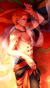 The deva path 天道 tendō grants the user the ability to manipulate attractive and repulsive forces with objects and people. Unfortunely the deva path of pain contains no interesting gadgets or gizmo s except his chakra receiver piercings so this was quite a simple sketch to do.